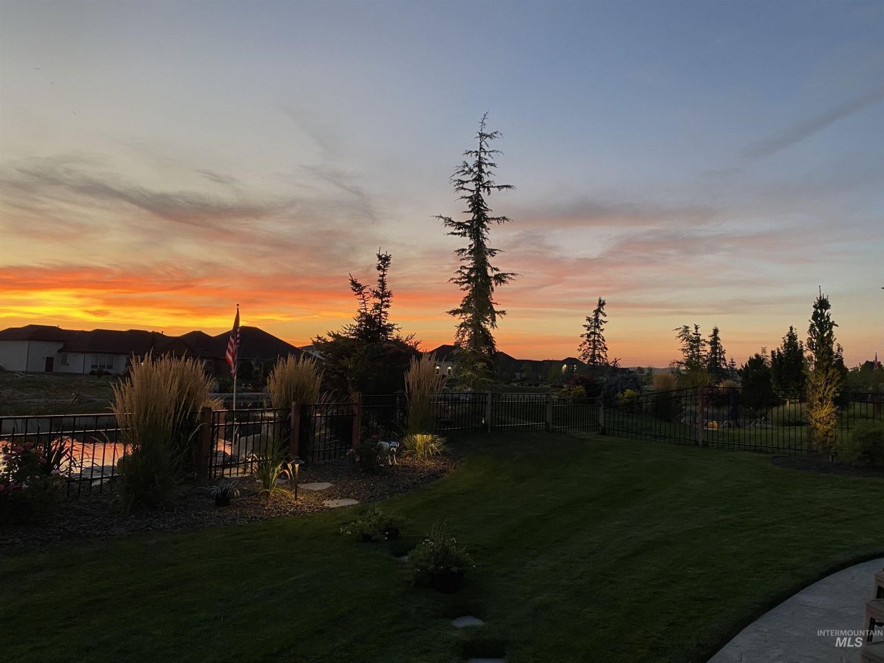 Welcome to 1345 N. Triathlon Ave in the highly sought-after Legacy Subdivision in Eagle ?where refined design meets exceptional waterfront & golf course living. This stunning single-level, open-concept home offers 2,495 square feet of thoughtfully designed space, featuring 3 bedrooms, a dedicated office, and 3.5 bathrooms. Perfectly positioned on a .27-acre pie-shaped lot, property backs to the water and showcases rare beachfront access, lush green lawn, designated irrigated garden and breathtaking sunset views. Outdoor living is elevated with a spacious patio, complete with an outdoor fireplace and built-in BBQ, creating the perfect setting for entertaining or relaxing by the water. Inside, the home shines with a recently remodeled kitchen featuring crisp white cabinetry, a huge center island, quartz countertops, and top of the line stainless steel appliances, all flowing seamlessly into the expansive great room. The great room is highlighted by wood beam ceilings, silhouette blinds adding warmth and character throughout. The beautiful primary suite offers a private retreat with a luxurious soaking tub, walk-in shower, and a large walk-in closet, wood shutters, designed for comfort and relaxation. Additional highlights include luxury large-plank neutral vinyl flooring, newer carpeting, and granite countertops in all bathrooms & a whole house purification system and humidifier.