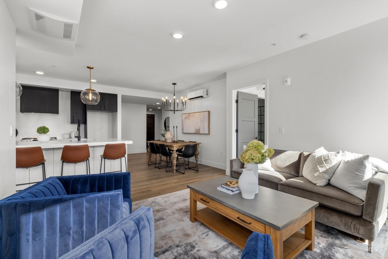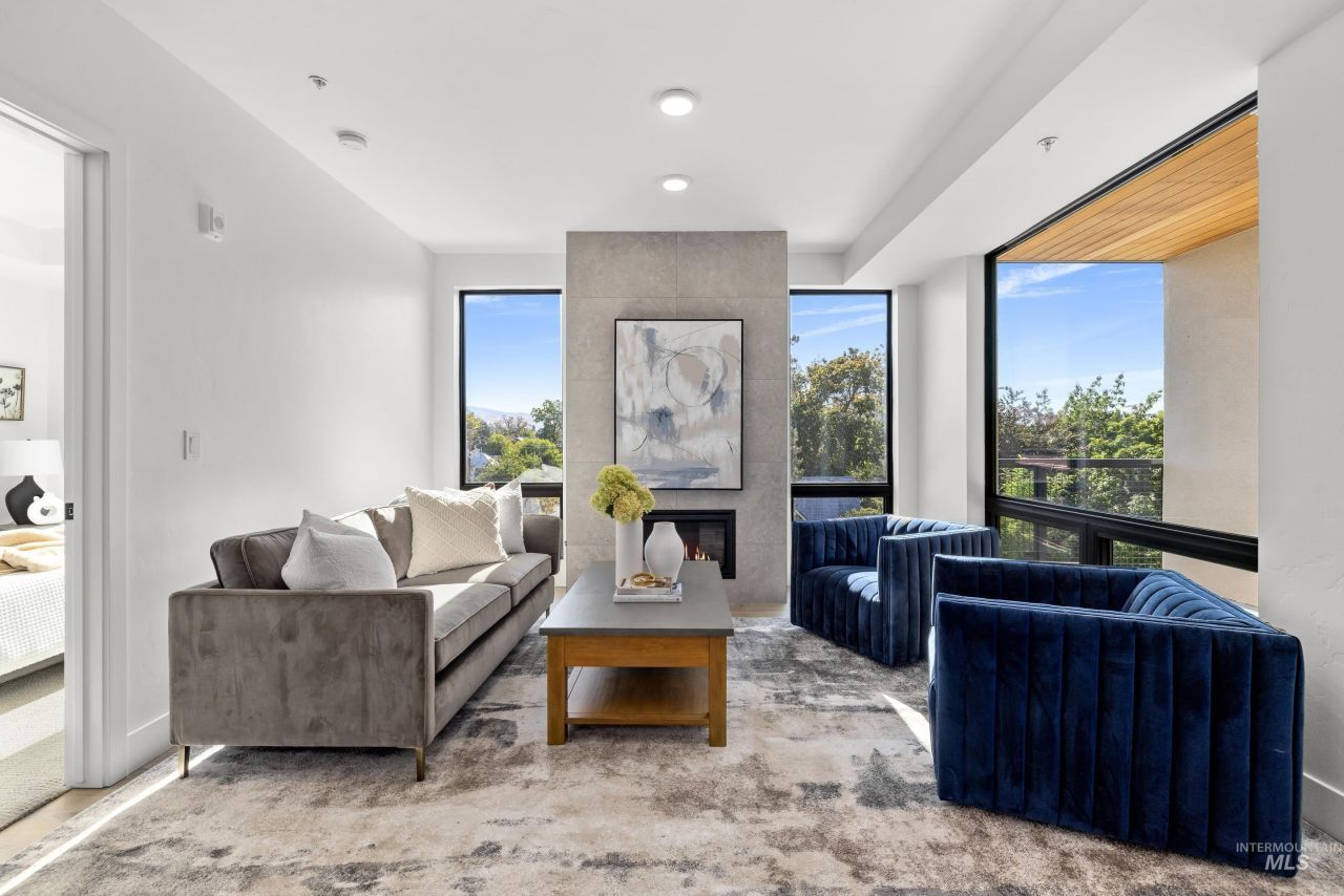 Introducing a new standard of luxury living?where refined design meets everyday comfort in the heart of Boise. These high-end condos redefine sophistication, offering an ideal blend of elegance, convenience, and style. From the moment you step into the grand lobby, youll be drawn in by the striking architectural details and thoughtfully curated finishes. Floor-to-ceiling windows frame stunning city views, while the interiors feature premium materials throughout: quartz countertops, modern shaker cabinetry, top-tier appliances, and a dramatic stone or tile fireplace stretching to the ceiling. Each unit includes a private patio, perfect for relaxing or entertaining. With unrivaled amenities like a state-of-the-art fitness center and a location just minutes from downtown, this is elevated urban living at its finest?where every detail is designed to enhance your lifestyle.