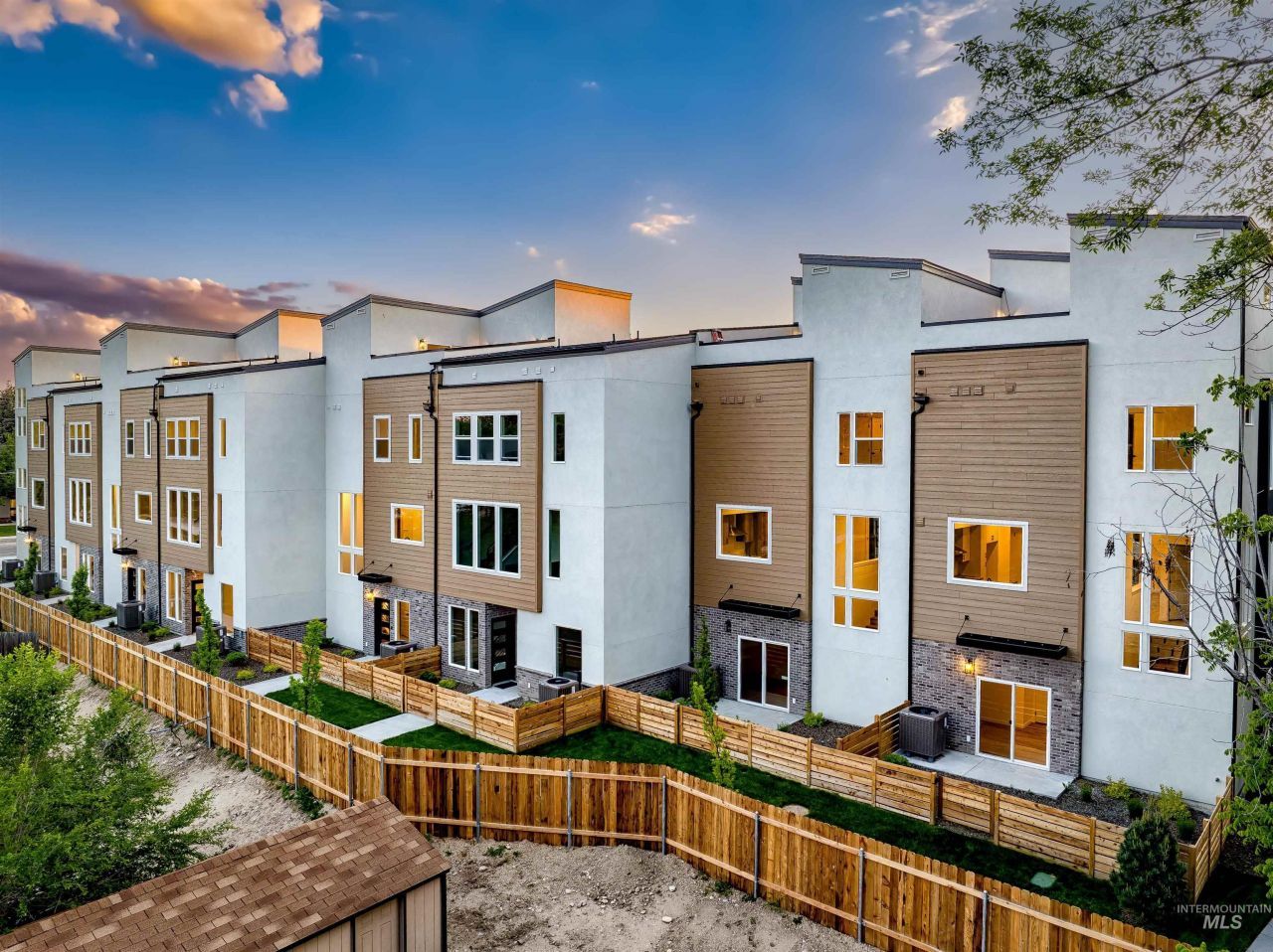 Experience elevated new construction living just minutes from downtown Boise, with easy access to parks, trail systems, and the Greenbelt. Boise23 delivers a rare blend of modern architecture and low-maintenance convenience in thoughtfully designed, multi-level townhomes. Expansive windows on every level flood the home with natural light and showcase open neighborhood views, creating a bright and airy feel throughout. Enjoy seamless indoor-outdoor living with a fenced front yard perfect for pets or gardening, a private patio ideal for entertaining, and a balcony that extends your living space year-round. Inside, the versatile layout offers a main-level bedroom or office?perfect for remote work or guests. The second level features an open-concept design with a stylish kitchen, generous dining area, and a light-filled great room designed for connection and comfort. Upstairs, retreat to a spa-inspired primary suite featuring a freestanding soaking tub, curated designer finishes, and a spacious walk-in closet. A well-appointed guest bedroom completes the upper level. An oversized 2-car garage provides exceptional storage and functionality. Combining contemporary design, a highly walkable location, and attractive financing opportunities, this home stands out as a rare find in todays market.