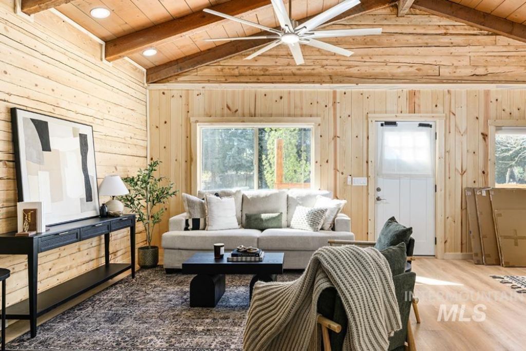 Tucked into Nampas one-of-a-kind log cabin neighborhood, this renovated custom home offers a rare mountain-inspired retreat w/ modern comfort. Includes ~60 RV parking with dual 10 gates and full 30/50amp + sewer hookups. No HOA. Taken to the studs & rebuilt, nearly everything is new?roof, decking, fixtures, insulation, HVAC (4-zone heat pump), plumbing, electrical, water heater, & more. Restored, sealed logs highlight the exterior, with fresh interior paint. Inside, the home offers new quartz counters, appliances, high-gloss Euro cabinetry, skylights, & waterproof LVP/LVT flooring. Custom details shine throughout?tongue & groove trim, Andersen windows, custom up/down blinds, & an original wood-burning fireplace set against a hand-crafted rock wall. Doors open to a wraparound deck for seamless indoor-outdoor living. Abundant natural light enhances the inviting feel & highlights the homes natural textures. Attached studio (with kitchenette to be completed shortly, separate HVAC, & private entry) offers flexibility for guests, rental use, or multigenerational living. Outside, the fully fenced yard features irrigation, new trees, & outbuildings offering flexible space for a studio, office, or retreat. Close to Lake Lowell Park, Northwest Nazarene University, & just minutes to downtown Nampa.