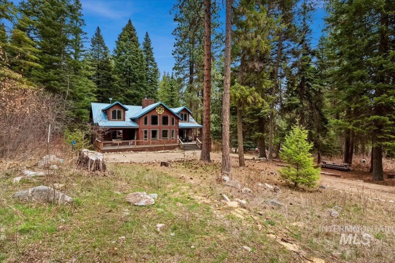 Incredible cabin on 1.29 Acres at the end of a mountain road. Dream kitchen with custom cabinets, granite countertops, dual oven, breakfast bar and gorgeous hardwood floors flowing into the great room and open dining room. Master suite located on the main floor with walk-in closet, dual vanities, jetted tub w/separate shower. Cabin has newer thermostat controlled pellet stove on the main floor and wood stove in the shop area in the basement. Loft area also provides sleeping area. Cabin also has forced air furnace and 2 newer AC units. HOA dues allow for access to Geothermal pool and 2 hot tubs. Currently being used half time for Airbnb and grosses over 30k annually on average. $9000 in bookings already on the calendar for 2026. Water can be turned on and off remotely. Accepted offer includes 95% of home furnishings. This is a turn key opportunity. Lot is very private and spacious. Massive decks were recently updated with Trex type of material for long term use. Basement is unfinished but set up with shop area including benches. This cabin has the comfort of a modern and beautiful home is a wild and scenic location minutes from Garden Valley restaurants and amenities and the gateway to Idahos back country.