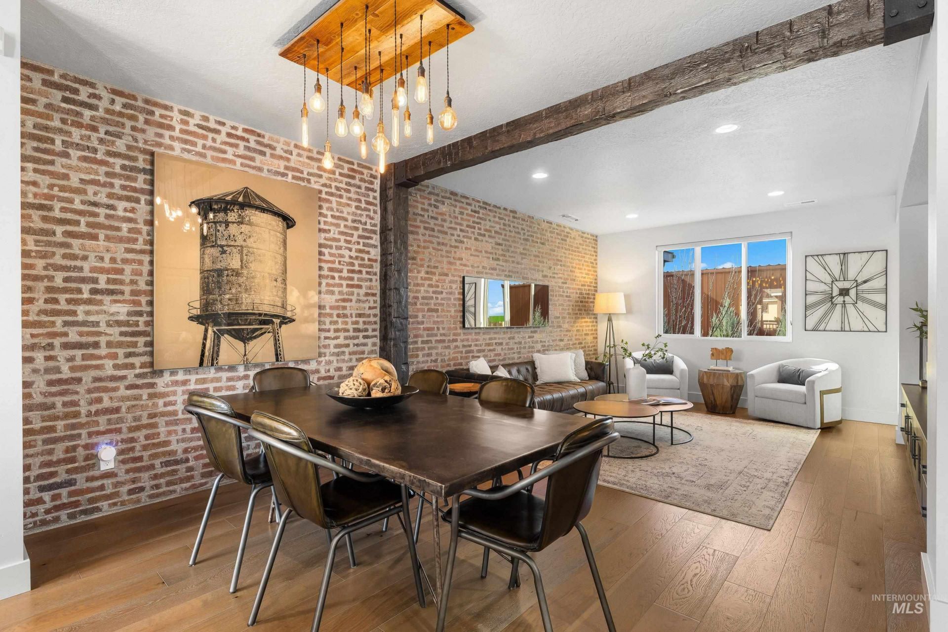 Discover the pinnacle of lock-and-leave living in this stunning Parade Home, where industrial modern design meets sweeping foothill views. Lightly-lived-in masterpiece offers a seamless blend of luxury and convenience in desirable Harris Ranch just minutes from neighborhood dining, shopping and recreation. Custom architectural details elevate the urban chic ambiance - exposed brick walls, striking wood beams and wide plank flooring seamlessly connect the light-filled great room with an entertainers kitchen outfitted with gas range, bar nook, stylish leathered granite island and direct balcony access. Relax and unwind in the master suite boasting a luxurious spa-like ensuite and spacious walk-in closet. Junior suite with attached full bath and private balcony access makes the perfect guest quarters or home office with a view! Rare end unit with no shared walls, 2 balconies and oversized garage with new epoxy coating plus recently installed water softener, reverse osmosis system and furnace make this an ideal turnkey property for investors or those seeking a low-maintenance home base.