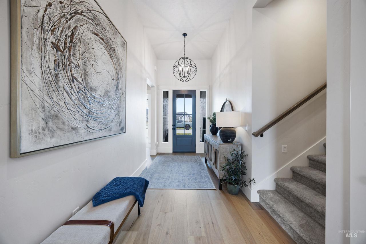 A James Clyde home from the original owners in the coveted Quartet community in Meridian. This home features a deluxe kitchen with all Thermador appliances, quartz counters, and dual ovens. Upstairs, enjoy a bonus room with 9ft ceilings, a full bathroom, and a second thermostat. Vaulted living room ceilings create an open atmosphere while insulated interior walls throughout the home promote a quiet and relaxing feel. Enjoy enhanced privacy on your covered patio with no immediate rear neighbors. BTVAI.