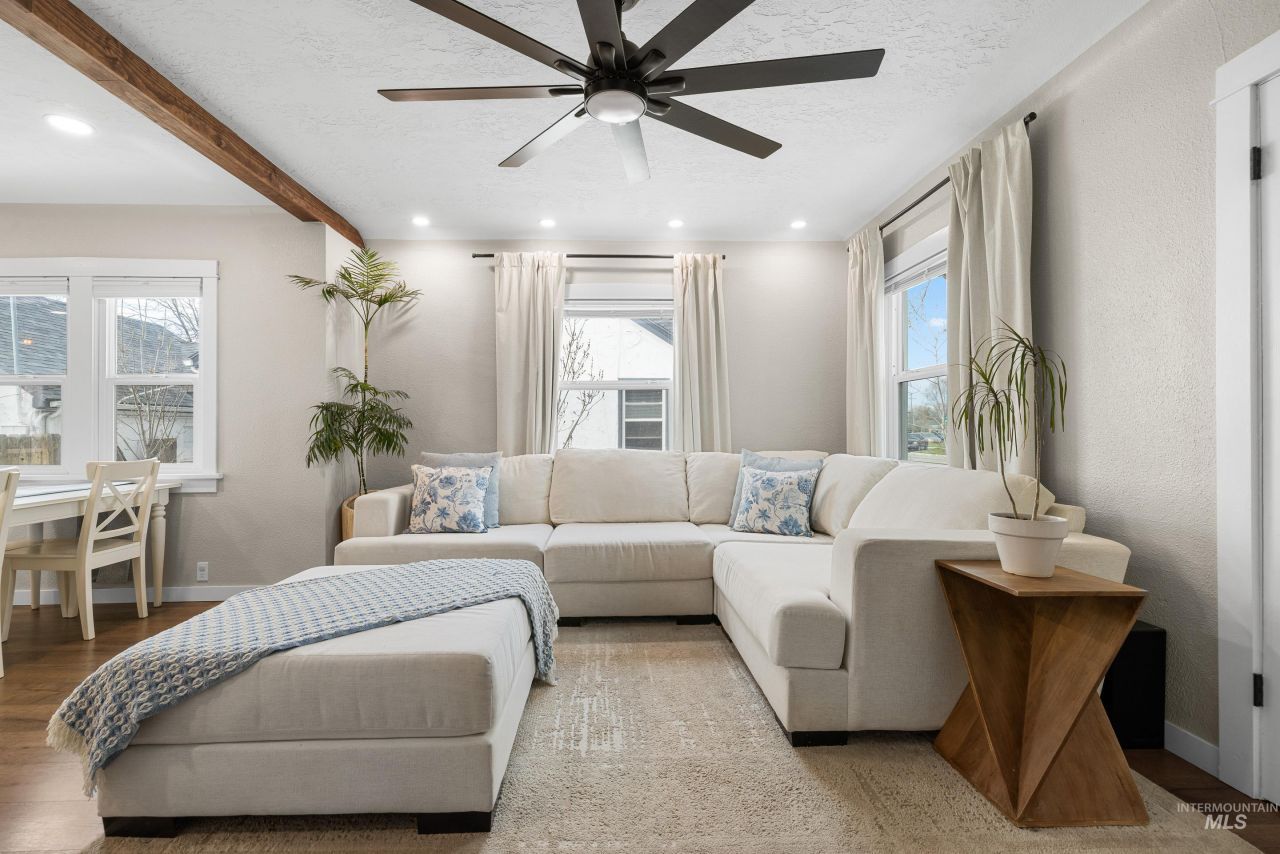 Dont miss this 5 bedroom 2 bath home packed with charm and space! This one lives large and has been fully remodeled to provide modern comfort while retaining its classic appeal. Step inside to find a spacious, open-concept living area that flows seamlessly into a beautifully updated kitchen with stainless-steel appliances, granite countertops, a pantry and open shelving. All the rooms have been recently renovated with new flooring & carpet throughout, new windows, fresh paint and updated LED recessed can lights featuring night light mode. The tastefully finished basement expands your living space, offering endless possibilities for recreation, an office, or a cozy movie room. Equipped with central air and heating for year-round comfort and abundant storage options throughout. Enjoy the large backyard with extended patio perfect for outdoor gatherings and complete with a gas line for a BBQ or heater, full sprinklers, raised garden beds and flower boxes. Alley access allows for RV parking and storage for all of your toys, with additional storage in the detached garage including a loft and EV charging outlet. Enjoy the freedom of no HOA fees and low taxes. Ideally situated near Northwest Nazarene University, parks, dining and entertainment, youre just steps from everything you need. With freeway access only 8 minutes away, this location makes both daily living and commuting easy!
